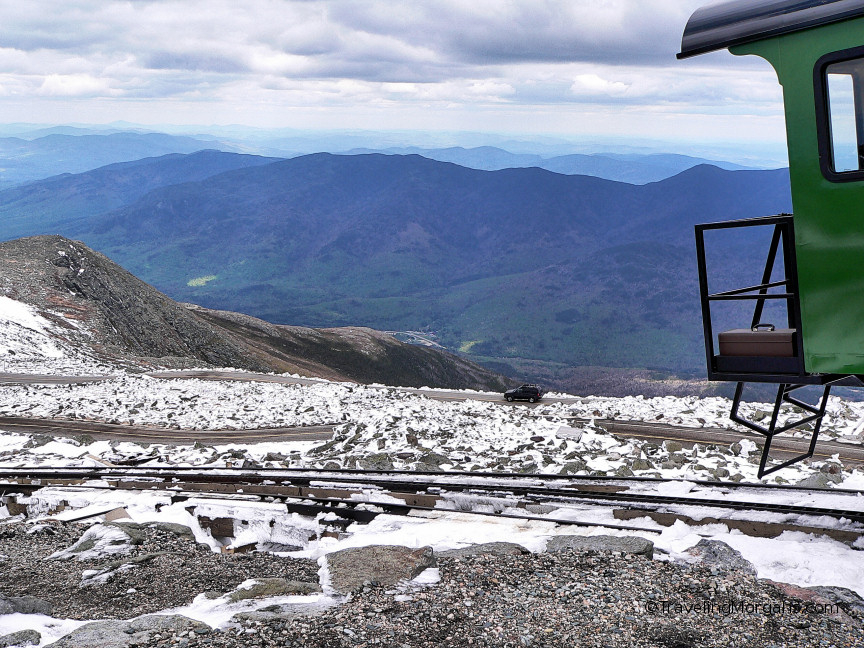 Mt Washington is a sample of the wondrous scenery that is New England. Shown is Cog Railroad at the summit with heavy snow on Memorial Day of 2008.