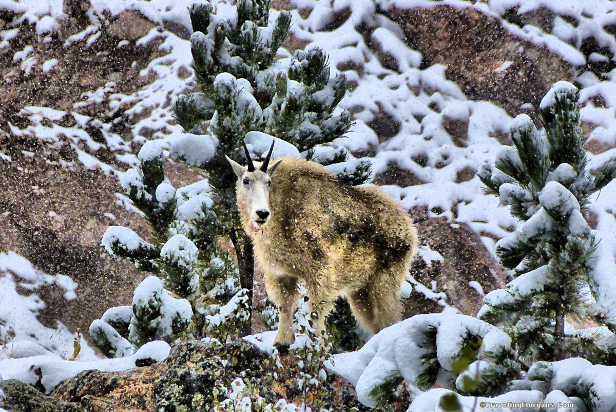 Majestic Mountain Goat Billy in a June Snow in the equally majestic Black Hills of South Dakota.